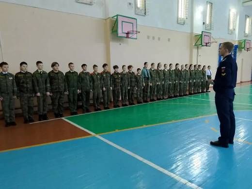 В рамках программы преемственности поколений и военно-патриотического воспитания Козлов Кирилл, курсант второго курса ВУНЦ ВВС вва им. Н. Е. Жуковского и Ю. А. Гагарина, провёл практическое занятие по строевой подготовке для учащихся кадетского класса.