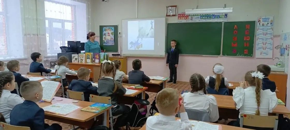 Первоклассники продемонстрировали отличную подготовку: ребята выразительно читали наизусть стихотворения о животных. На уроке дети познакомились с творчеством замечательных писателей-натуралистов и детских поэтов: К. Паустовского, В. Бианки, Б. Заходера и С. Михалкова.